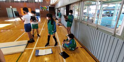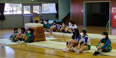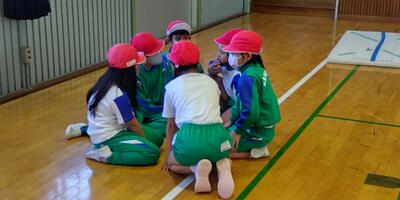 1年生は「体育」の授業です。友達の良かったところも発表しています。