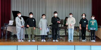 今日は「表現力養成講座」のリハーサルです。最初で最後のステージ上での練習です。立ち位置や音量、声量を確認しました。発表前日の今日も「表現する」ことにこだわった話合いが、絶え間なく続いています。発表後の振り返りでは、子どもたちのどんな声を聞くことができるのでしょうか。練習の合間に声援を送る姿もありました。
