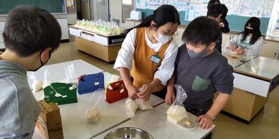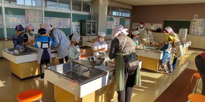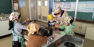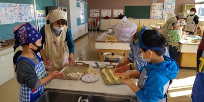 毎日食べている給食は、町内産や県内産の物や旬の食材が使われています。牛乳は酪農家の人が牛を育てて乳をしぼり、米や野菜は農家の人が田んぼや畑で育てて収穫しています。そして日本は海に囲まれているため、様々な魚介類を食べることができています。感謝していただきたいですね。