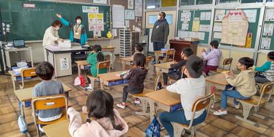 1年生は「国語」の授業です。カタカナを学習していますね。