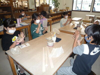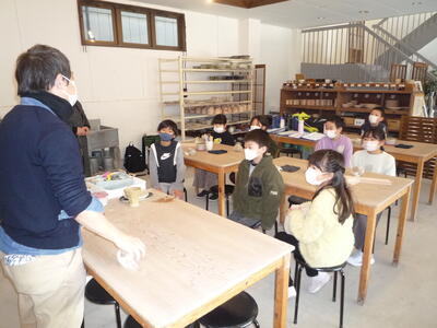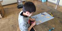 2年生は、「図工」の授業です。カッターナイフの使い方について学習しています。難しいですね。