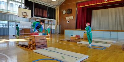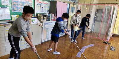 卒業まで約30日となった6年生の皆さんが、保健室、会議室の清掃やワックスがけのボランティア活動をしてくださいました。教室にあるすべての荷物を運び出して床を掃除するなど、手際よく清掃作業を進めていきます。きれいに水ワックスが塗られて床がピカピカです。