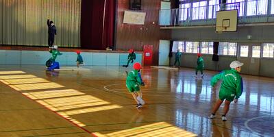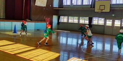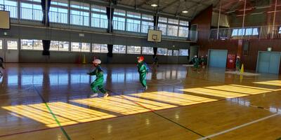 今日は、スポーツ鬼ごっこです。相手の陣地のカラーコーンを獲得するために、皆で作戦タイムです。作戦を重ねるごとに相手の陣地に攻めいることが難しくなってきます。集団の中で、一人一人がどんな役割を担うかが勝敗の分かれ道です、運動能力にかかわらず、楽しく運動し、達成感を感じることができました。
