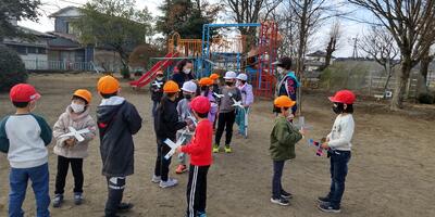 本日は、のびのび保育園の年長児の皆さんをお迎えして、交流会を行いました。「はじめまして」の会では、1年生から保育園の皆さんにアサガオの種をプレゼントしました。その後、1年生が手作りした風車を一緒にまわしました。上手に風に乗せまわすことができ、皆大喜びです。一緒に記念写真を撮ったり、遊具で遊んだりすることができ、楽しいひと時を過ごすことができました。