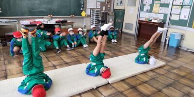 5年生6年生は、合同体育です。動きを高める運動に挑戦しています。