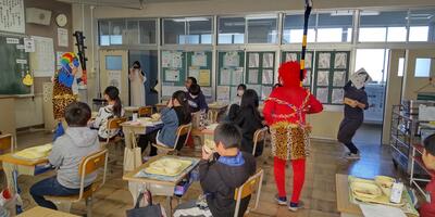 昔の人は病気や災害などは悪い鬼が持ってくると信じていました。そこで節分には「魔の目を射る」という意味の炒り大豆を「鬼は外、福は内」とかけ声をかけ、まきます。給食の福豆はまかずによく噛んでくださいね。