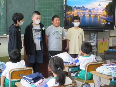 また、昼休みには1年生の「あいさつ隊」が各教室を回って「こんにちは」と元気な声をかけていました。