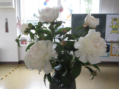 校舎東側のシャクヤクが、大輪の花を咲かせました。