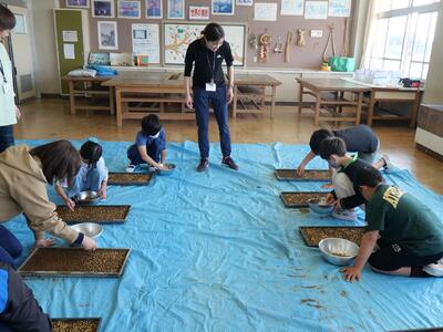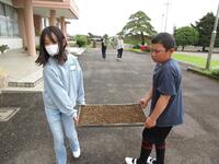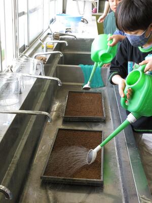 総合的な学習の時間「お米を作ろう」で、5年生が「ゆうだい21」の種をまきました。