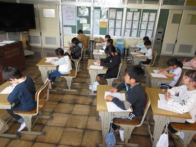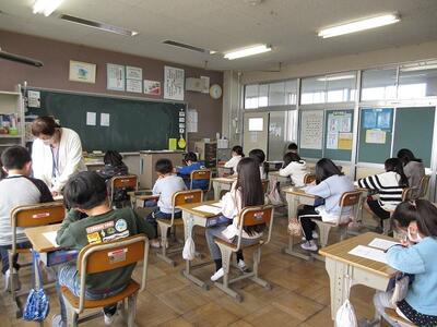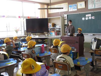 下校前の1年生の教室を訪ねてみると、帰りの会の最中でした。