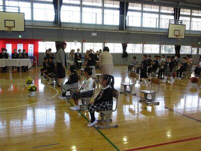 式中の新入児童呼名では、一人一人、大きな声で元気に返事ができました。また、上級生のお兄さんお姉さんたちはもちろんですが、一年生の皆さんも、話をしっかりと聞くことができました。さらに、来賓の方々からの「入学おめでとうございます」という声かけに、一年生の皆さんが「ありがとうございます」とお礼を言えたことも素晴らしかったです。