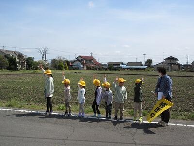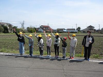 「手を挙げて、右・左・右」のかけ声に合わせて、一人一人がしっかりと自分の目で安全を確かめていました。