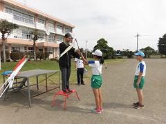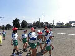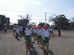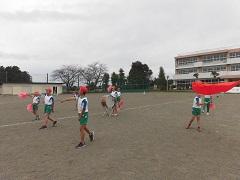 次に「おじいさんおばあさんこんにちは」の練習を行いました。1・2年生が歓迎の気持ちを込めてあいさつをした後、手をつないでいっしょにゴールを目指します。高齢者の皆様は、楽しみにしていて下さい。練習では上学年が高齢者役をしました。
