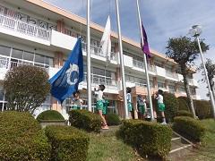 全校リレーの後は、開会式・ラジオ体操・閉会式の練習をしました。開閉会式は、優勝旗返還と授与、国旗掲揚と貢納など本番と同じように行いました。礼もきちんとそろってきました。赤白両団長の選手宣誓もすばらしいので期待していてください。