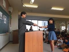 第2学期始業式に引き続き、表彰を行いました。今回は、地区芸術祭音楽祭合唱の部 奨励賞の3~6年生と明るい選挙啓発ポスターコンクールで優秀な成績を収めた児童を表彰しました。おめでとうございます。