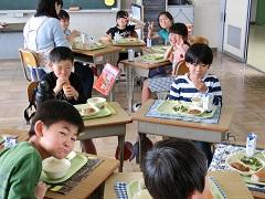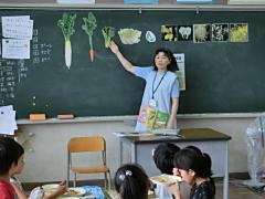 町立学校給食センターの栄養教諭が来校し、3年生に対して食指導が行われました。野菜に関する話を聞き、今日は、特に野菜を残さず食べていました。