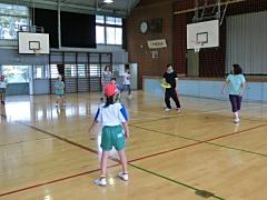 3年生が親子ふれ合い活動として、体育館で親子でドッジビーを実施しました。汗いっぱいになりながら楽しく活動しました。その後、教室で親子で一緒に給食を食べました。