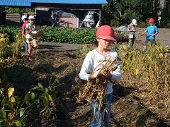 3年生が学校農園で栽培していた大豆を収穫しました。今後、この大豆を使って納豆づくりや豆腐づくりに挑戦する予定です。