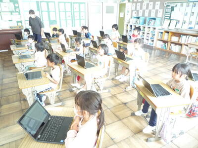 今日もさわやかな晴天です。校庭では、体育の授業が行われています。どの学年も運動の基本である「走る」領域の活動です。いろいろな走り方や50メートル走、リレーに取り組んでいます。また、1年生が「学校探検」を行いました。校舎内のいろいろな部屋を興味深く探検しました。校長室にも探検に来てくれました。ソファーに座ってお話したり、パソコンをのぞいてこのホームページを見たりしました。「一人でこの部屋にいて、さみしくないの?」と心配しくれる子もいました。そのやさしさ、ありがとうございます。