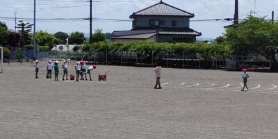 3年生4年生は、「体育」の授業です。ボール投げの測定中ですね。