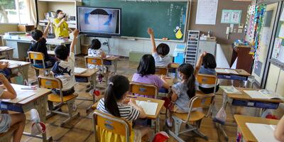 毎週月曜日の朝の活動は、「スタディタイム」です。本日は早朝から30℃超えの暑さとなっておりましたので、朝の活動より各教室のエアコンを稼働いたしました。子どもたちは落ち着いて取り組んでいます。