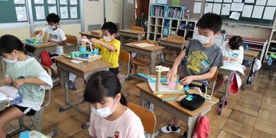 5年生は、「図工」の授業です。箱の中には、どんな世界が広がっているのでしょうか。