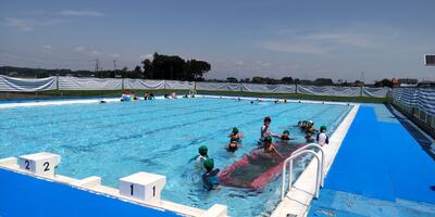 どの子も真剣な表情で、ブラシ使って磨いていました。活動開始から約1時間、プールの清掃が終了しました。自分たちが使うプールを自分たちできれいにすることで、水泳授業もより待ち遠しくなりました。