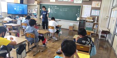 「体育」の授業は、安全面を考慮し、1・2年、3・4年、5・6年合同で2~3人体制で行っています。