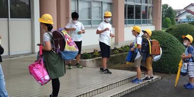 3年生は、これから東小学校3年生との合同校外学習です。2年生生活科のオンライン交流で、すっかり仲良しになりましたね。いってらっしゃい。