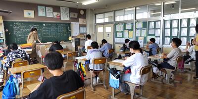 1年生は、何の授業でしょうか。姿勢がとても良いですね。