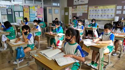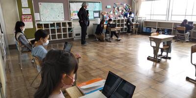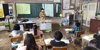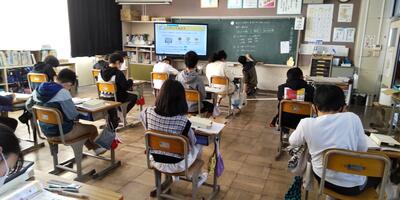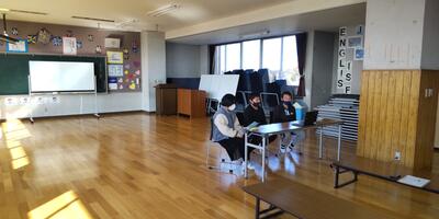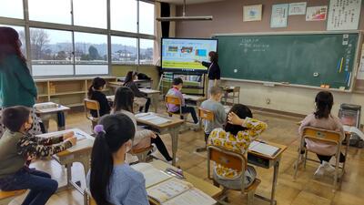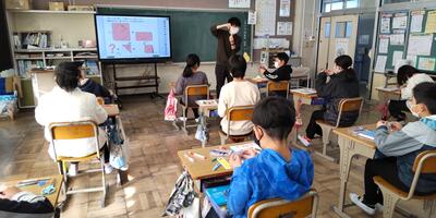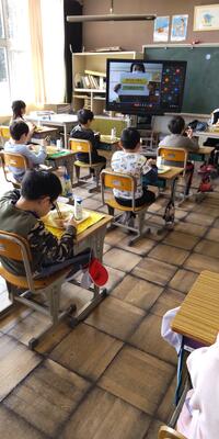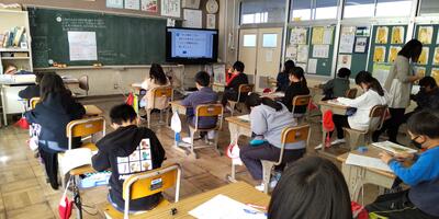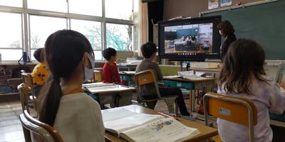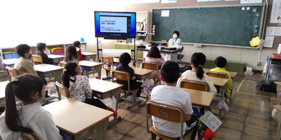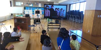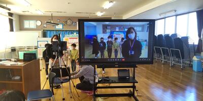 例年6年生を対象にして実施していた「国際交流集会」を、今年度は新型コロナウィルス感染症拡大のためのまん延防止措置の適用期間であることから、オンラインで行いました。