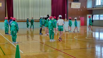 スポーツクラブは、一緒にドッジボールをしました。強い球を投げてしまった5年生6年生が、「ごめんね」と3年生に謝ると「あてるゲームなんだから心配しないで」と応える3年生。