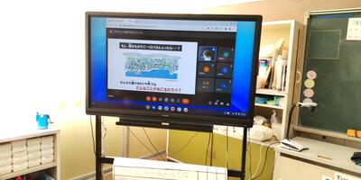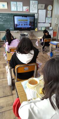 今日の朝の活動は、保健給食委員会の子どもたちによる「オンライン児童集会」でした。