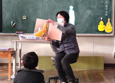 毎月1回の「読み聞かせ」を、子どもたちはとても楽しみにしています。朝、「読み聞かせ」をしていただくと、早速、業間の休み時間に、同じ本を図書室でさがしている子どもたちに出会います。季節や学年の学習にちなんだ本など、いつも、上高根沢小学校の子どもたちの顔を思い浮かべながら、本を選んでくださっています。