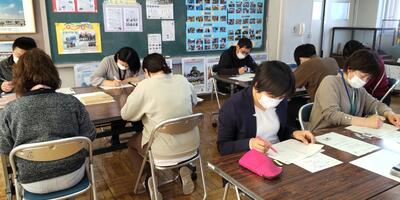 3年生は「社会科」の学習です。3年の社会科全般の「振り返り」をしています。