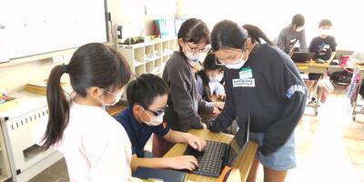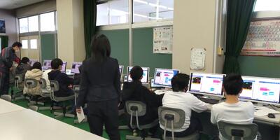 町非常勤講師の橋本慎一先生から、プログラミングの基礎を学びながら学習に取り組みました。将来の夢にゲームクリエイターをあげている子どもたちも多く、意欲的に学習に取り組んでいました。