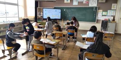 5年生の「外国語科」は、「ALL ENGLISH」での1年間の復習の授業です。