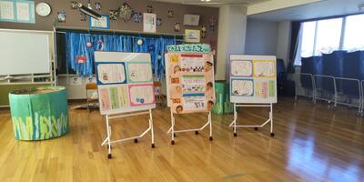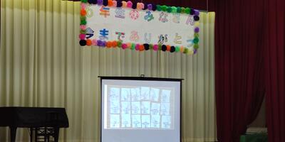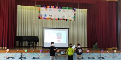 1年生が、生活科発表会を行いました。国語、算数、図工、外国語、体育の5つのグループに分かれての発表です。どのグループも自分たちができるようになったことを様々な工夫をしながら、発表することができました。