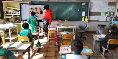 6年生は「国語」の授業です。教室の黒板に「卒業まであと何日」のカードが登場しました。