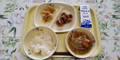 今日は「地産地消の日」の給食です。学校給食だよりでもご案内いただいていますが、25日(火)~28日(金)は地産地消の日として、県内産や町内産の食材が多く使用されています。生産地が分かることで安心して給食をいただけるのは有難いことです。