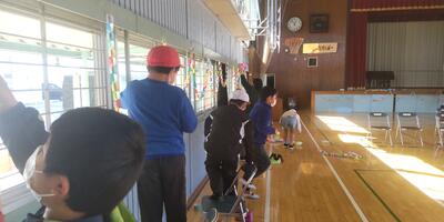 4年生、5年生の皆さんが、6年生への感謝の気持ちをこめて、会場準備を一生懸命にしてくださいました。