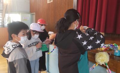 昔遊び・室内遊びクラブは、花いちもんめやかごめかごめの仕方を3年生に教えていました。