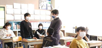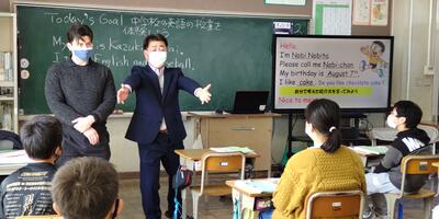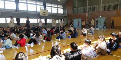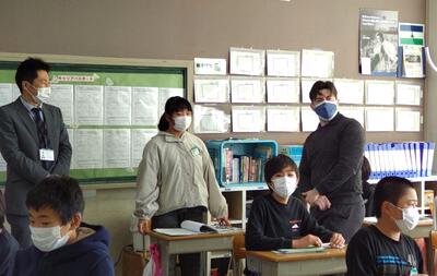 小中一貫教育の一環として、6年生対象に、北高根沢中学校英語担当の荒井先生とALTのマシュー先生においでいただき、英語の授業を行いました。まず、中学校での英語の授業を体験させていただきました。次に、自己紹介をしました。最初は、戸惑っていたようですが、すぐに授業に慣れ、笑顔あふれる楽しい活動となりました。直に中学校の先生の授業を受けることにより、雰囲気を体験でき、進学にあたっての不安感も解消された6年生です。