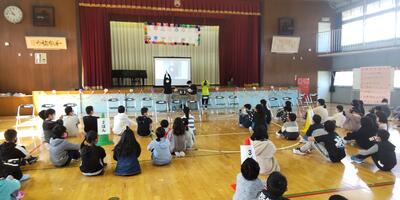 1年生は、様々な種類の食べ物を食べていることをクイズ形式で、5年生は、ふだんどれだけたくさんの砂糖を摂っているか、また、バランスよく食べることの大切さを教えていただきました。