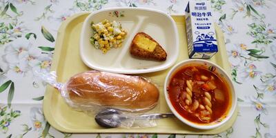 今日の給食は、西小学校6年3組の皆さんのリクエスト給食です。ウインナー、ツナサラダのセルフサンドは、たんぱく質たっぷりで栄養満点ですね。ミネストローネスープとの相性も抜群です。ありがとうございました。