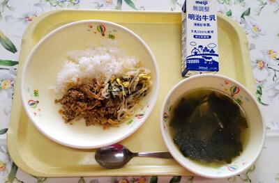 今日は、下野市の学校給食人気メニュー「和風ビビンバ丼」が新メニューとして登場しました。豚ひき肉、にんじん、ごぼう、しらたき、油揚げ、ごまとたくさんの食材が入っています。3月号の「学校給食だより」に材料と作り方が掲載されていますので、是非、ご家庭でもお試しください。