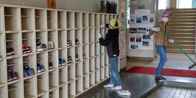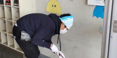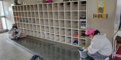 卒業まであと3日となった6年生が、保健室、図工室、昇降口の清掃や、校庭のライン整備のボランティア活動をしてくださいました。教室にあるすべての荷物を運び出して床を掃除するなど、手際よく清掃作業を進めていきます。すべてのくつ箱、傘立ての中も水雑巾できれいに拭いてくださり、ピカピカです。