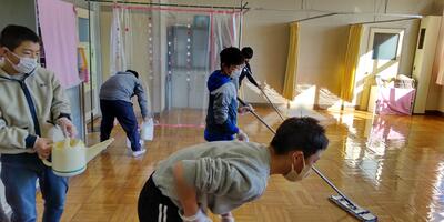 卒業まで約30日となった6年生の皆さんが、保健室、会議室の清掃やワックスがけのボランティア活動をしてくださいました。教室にあるすべての荷物を運び出して床を掃除するなど、手際よく清掃作業を進めていきます。きれいに水ワックスが塗られて床がピカピカです。
