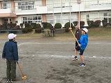 地域の方に協力していただき、輪投げ、グラウンドゴルフを行いました。最後に、七輪で炭をおこし、お餅を焼き、地域の方々と一緒に食べたました。