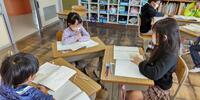 2年生は、「国語」の授業です。様子を想像しながら読んでいます。